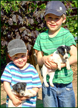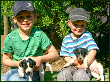 Die A-Welpen Aramis und Audrey Hepburn sind nun 5 Wochen alt und haben Besuch von den Nachbarskindern bekommen.