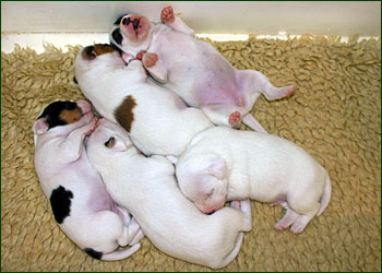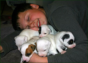 Nun sind die Welpen schon 3 Wochen, haben die Augen geöffnet und machen sichtlich Freude: