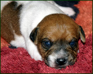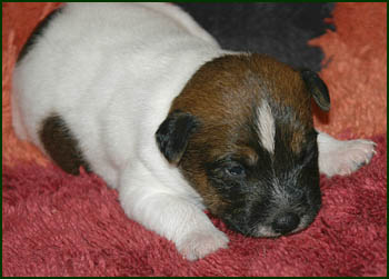 Heute sind die Welpen 2 Wochen alt! Die Augen sind nun geöffnet und sie entwickeln sich weiterhin sehr gut. Die Namen der Rüden sind Catweazle, Charles Bronson, Che Guevara und Clint Eastwood, die Hündin heißt Celine Dion.