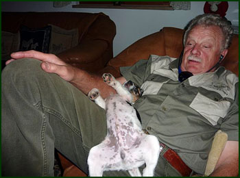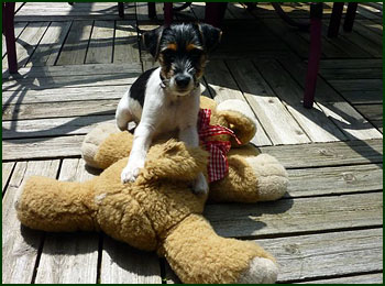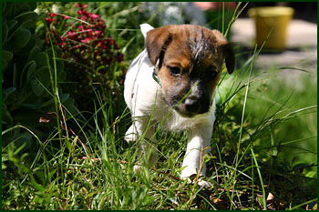 Tag geht ein Welpe ohne seine Geschwister mit auf den Spaziergang. Das