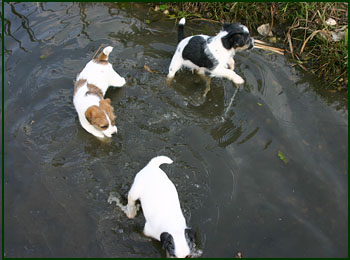 Heute ging es mit den Welpen an den Teich zum plantschen.