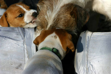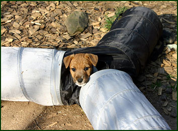 Die H-Welpen mit 7 Wochen: Es ist nichts mehr sicher... Die größte Freude konnte ich ihnen mit dem Katzentunnel machen!