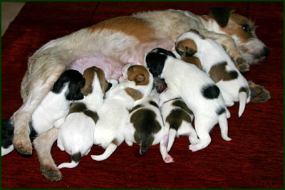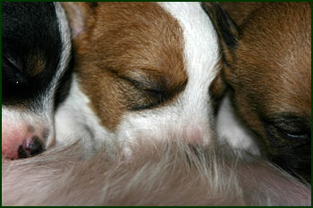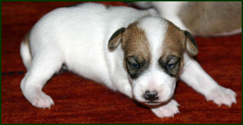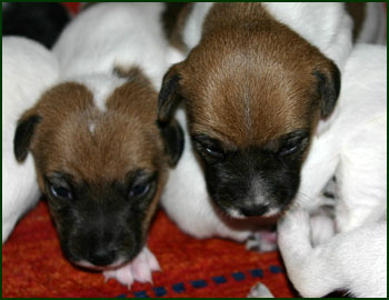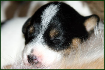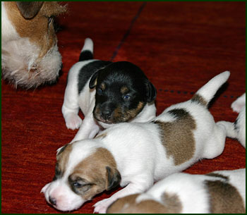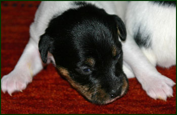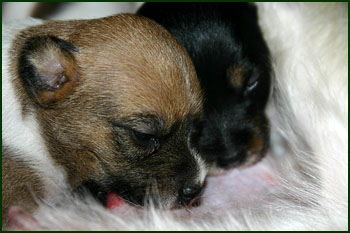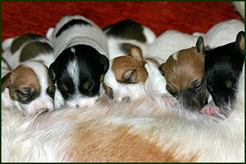 ![]() Die Welpen sind nun 14 Tage alt. Die Äuglein sind offen und die Herrschaften werden immer mobiler. |