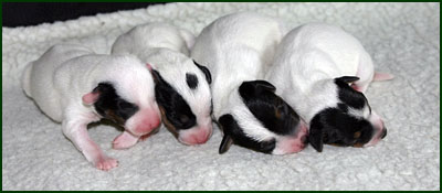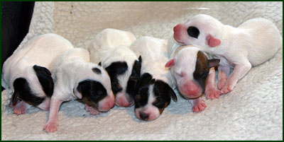 Am 09.07.09 hat Bea ihren Wurf bekommen, es sind 2 Rüden und 4 Hündinnen. In knapp 2 Stunden waren sie auf der Welt, die Gewichte liegen zwischen 120 und 180 Gramm. Nach 2 Tagen sind sie nun schon bei 160 bis 220 Gramm!